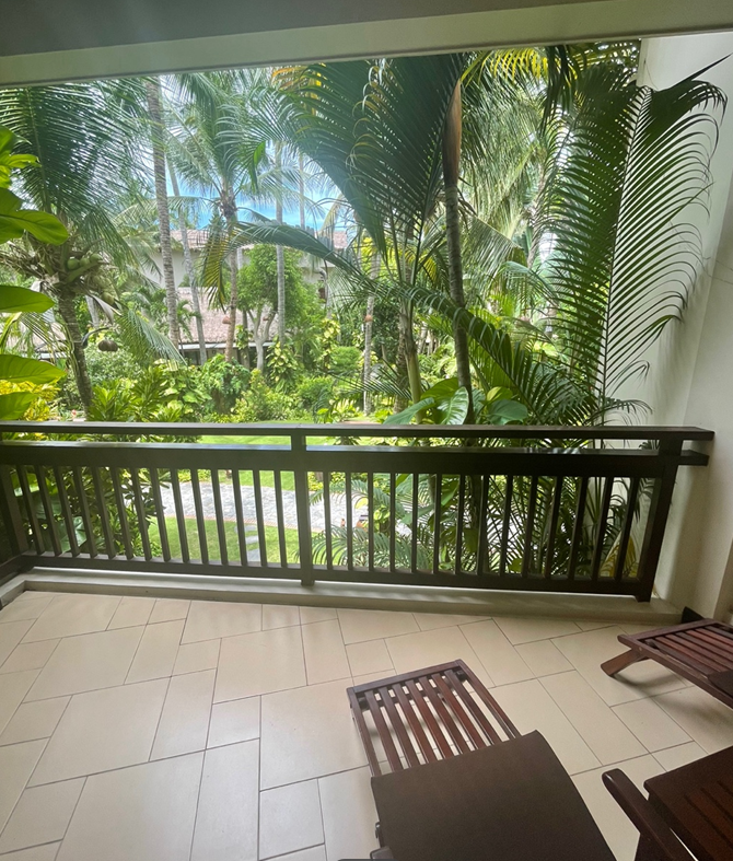 가장 만족스러웠던 건 바로 창가 쪽 개별 베란다였어요. 저희는 2층이었는데, 밖에 바로 보이는 정원 전경이 정말 사진으로 담기지 않을 정도로 너무 예뻤습니다.