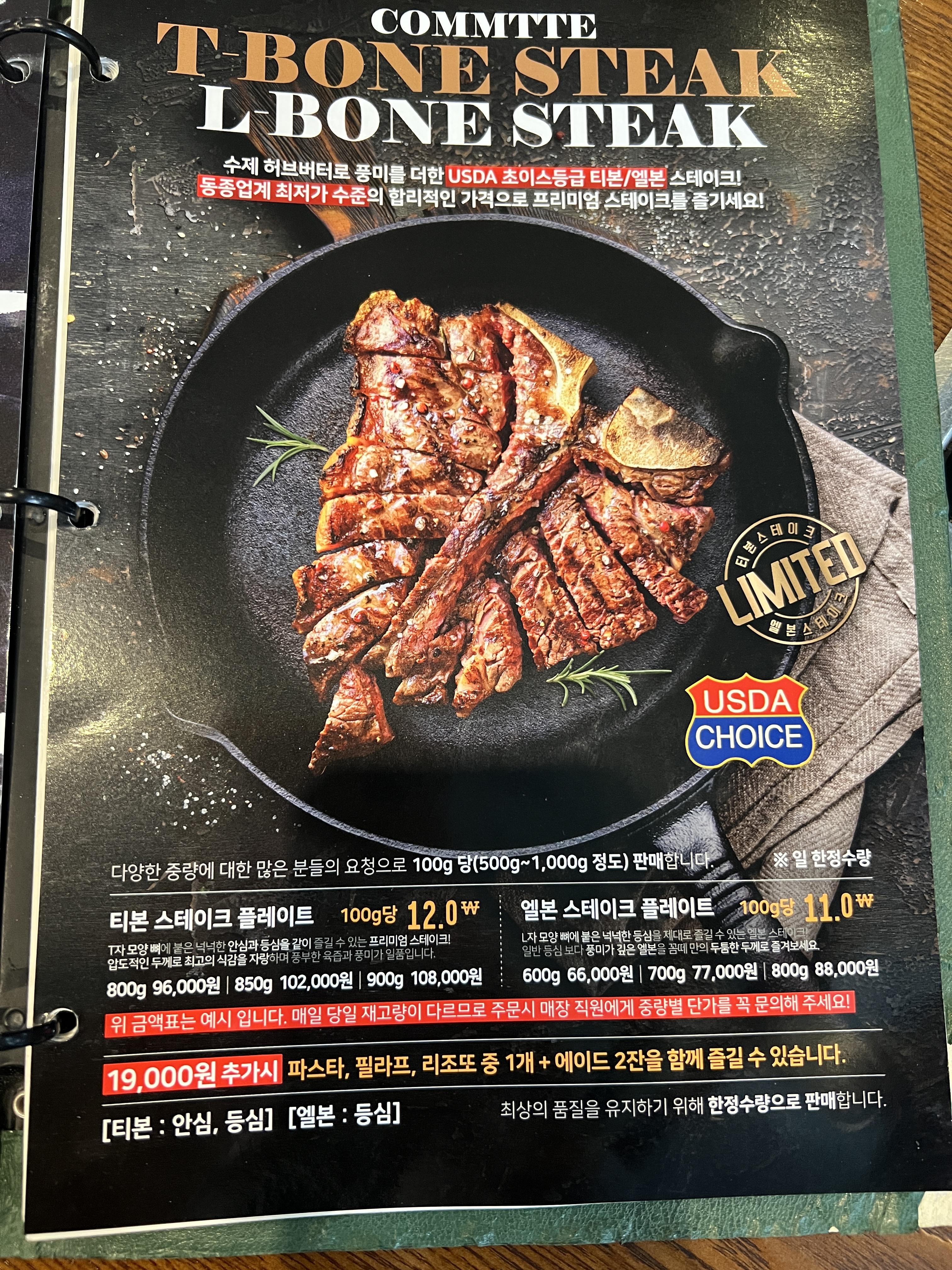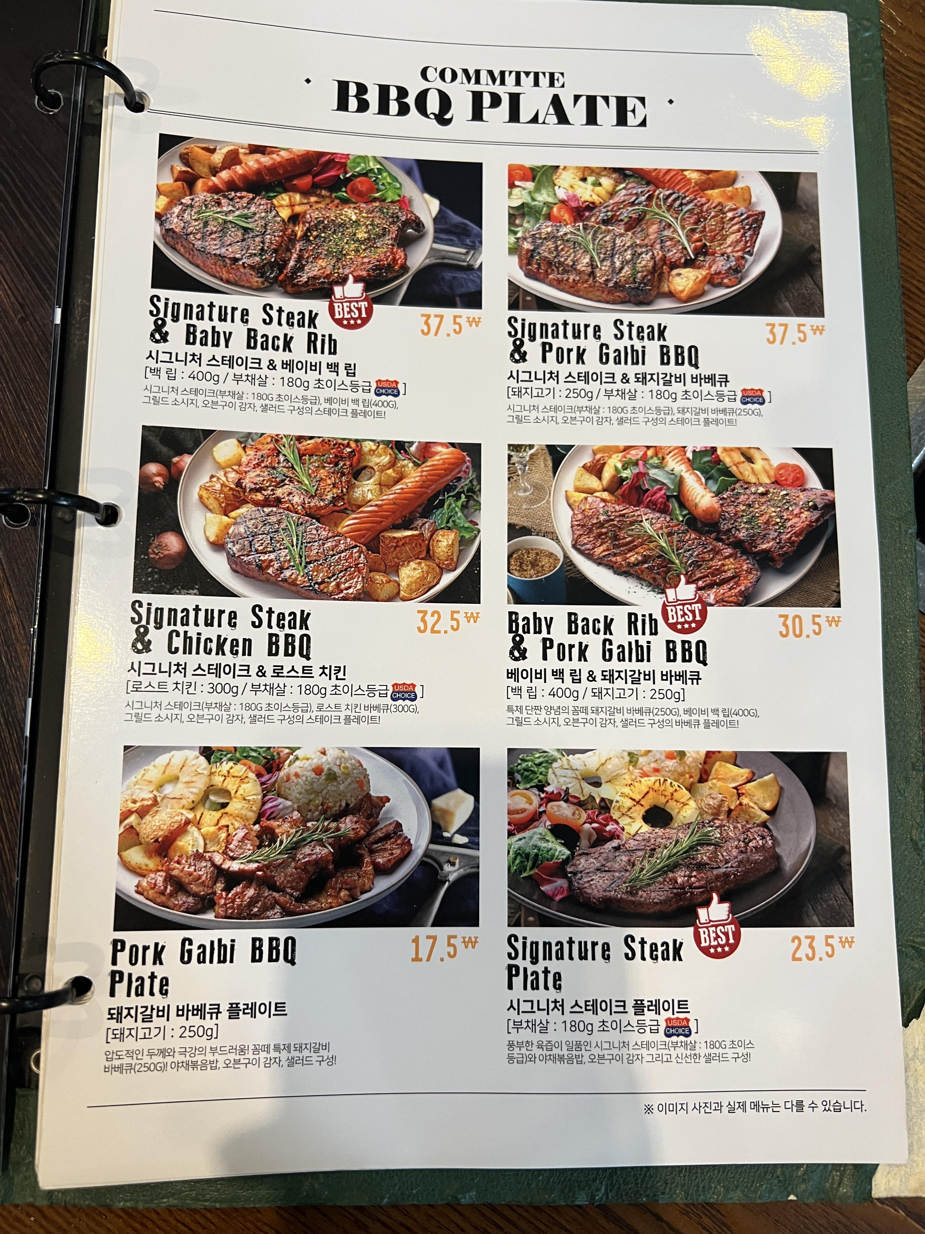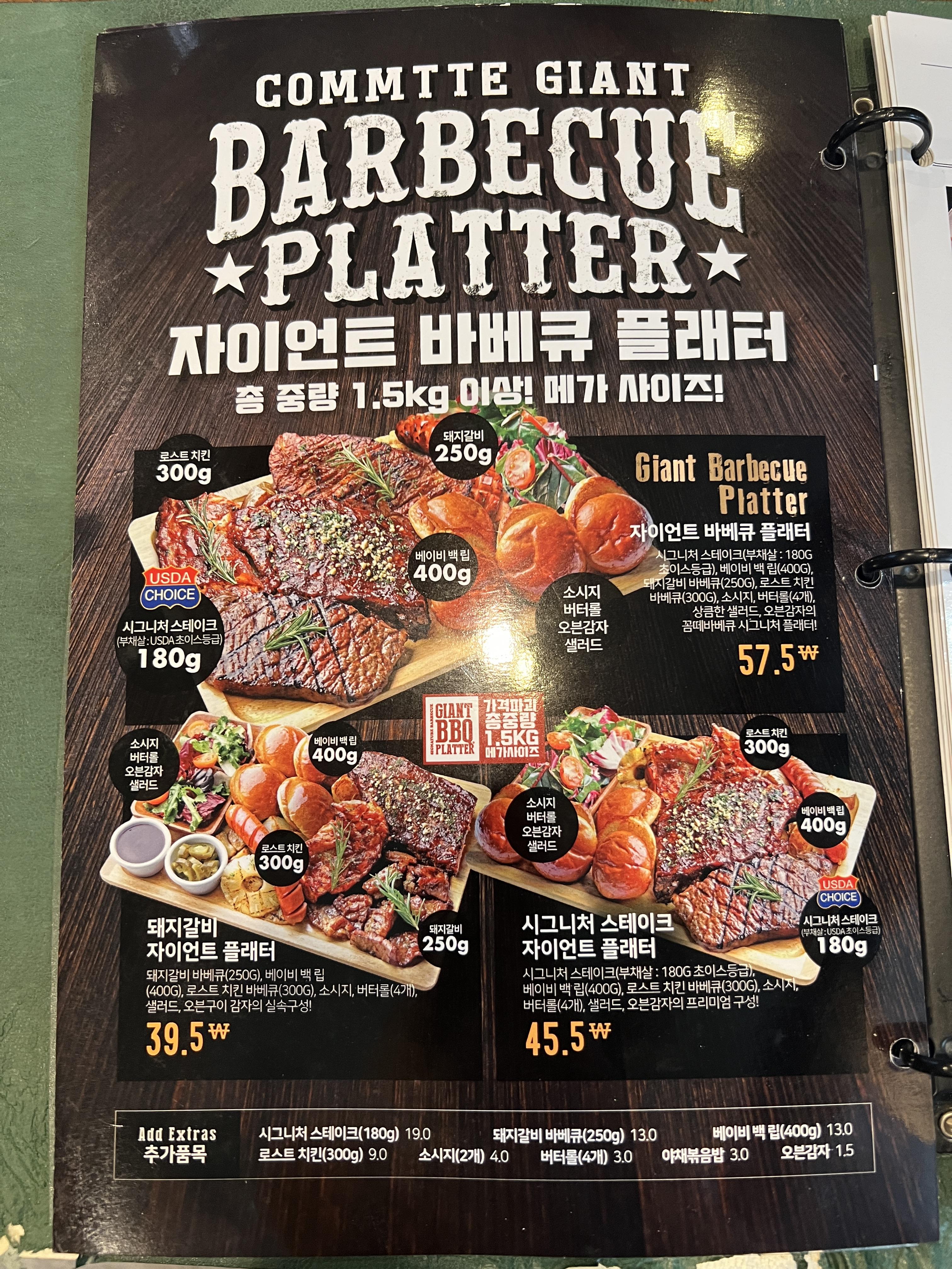 티본스테이크부터, 여러 가지를 한 번에 맛볼 수 있는 바베큐 플래터까지