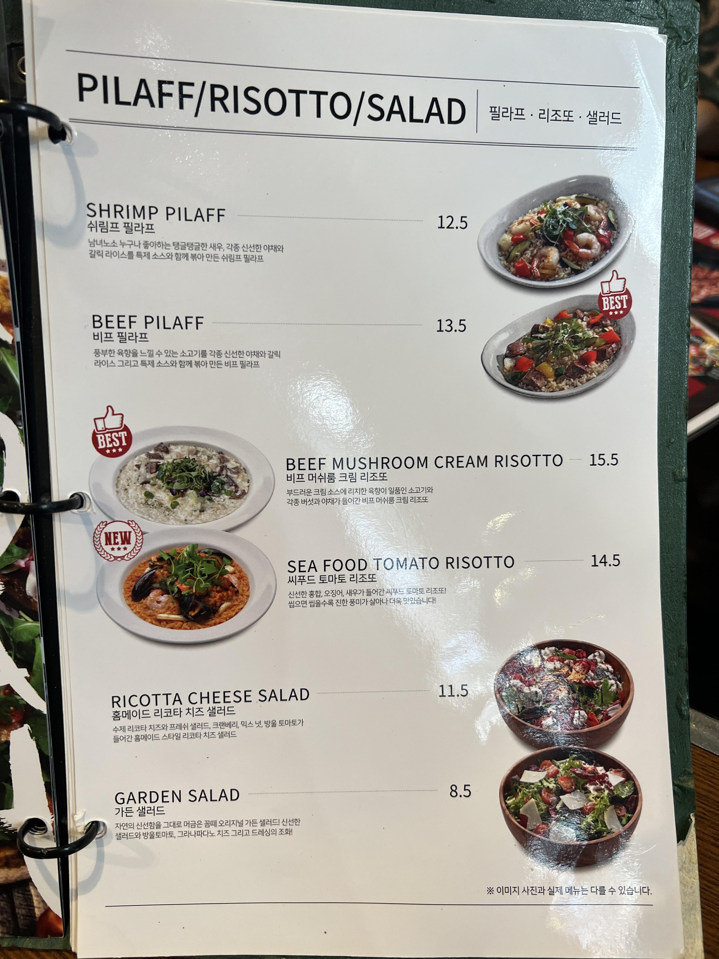 파스타,피자 샐러드 등 정말 다양한 메뉴들이 있습니다.