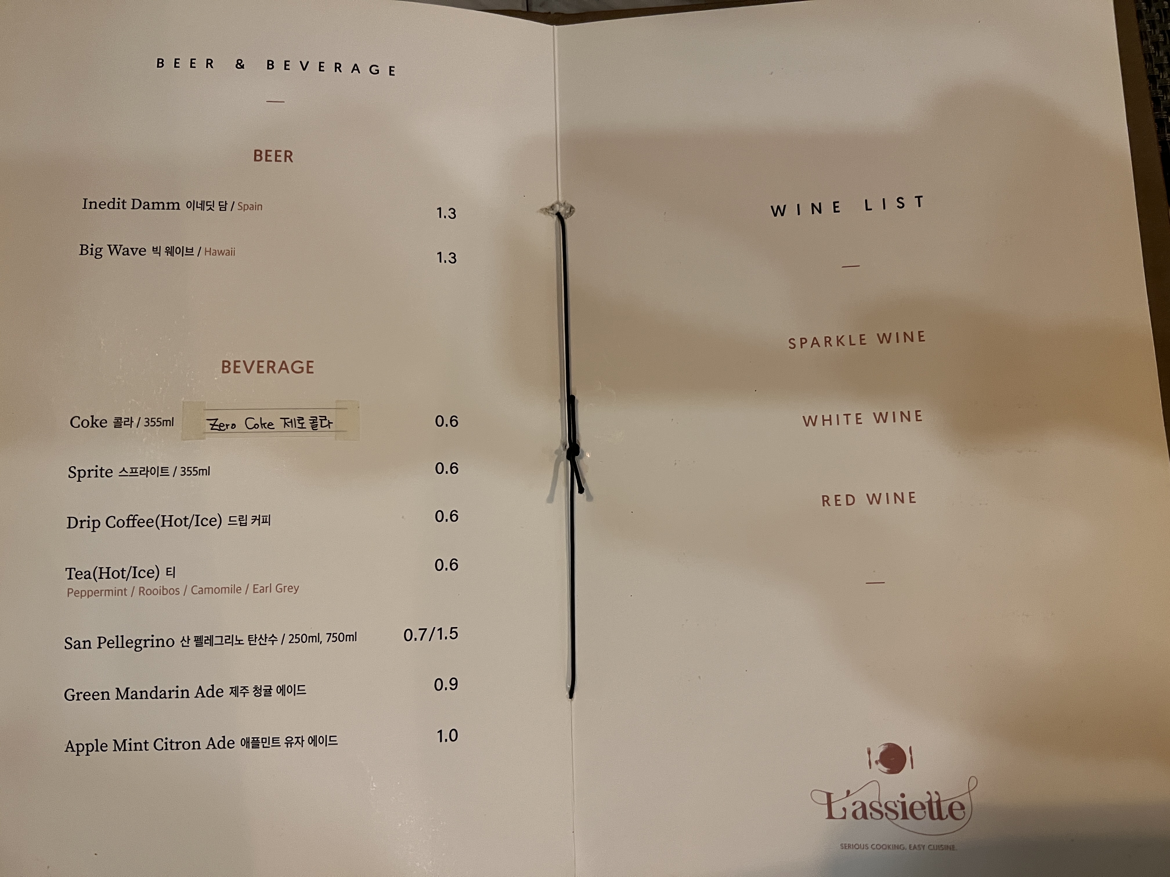 라씨에트는 프랑스어로 접시를 뜻한대요, 또한 프렌치 베이스로 와인과 음식을 즐긴다는 가정하에 간이 조금 있으니