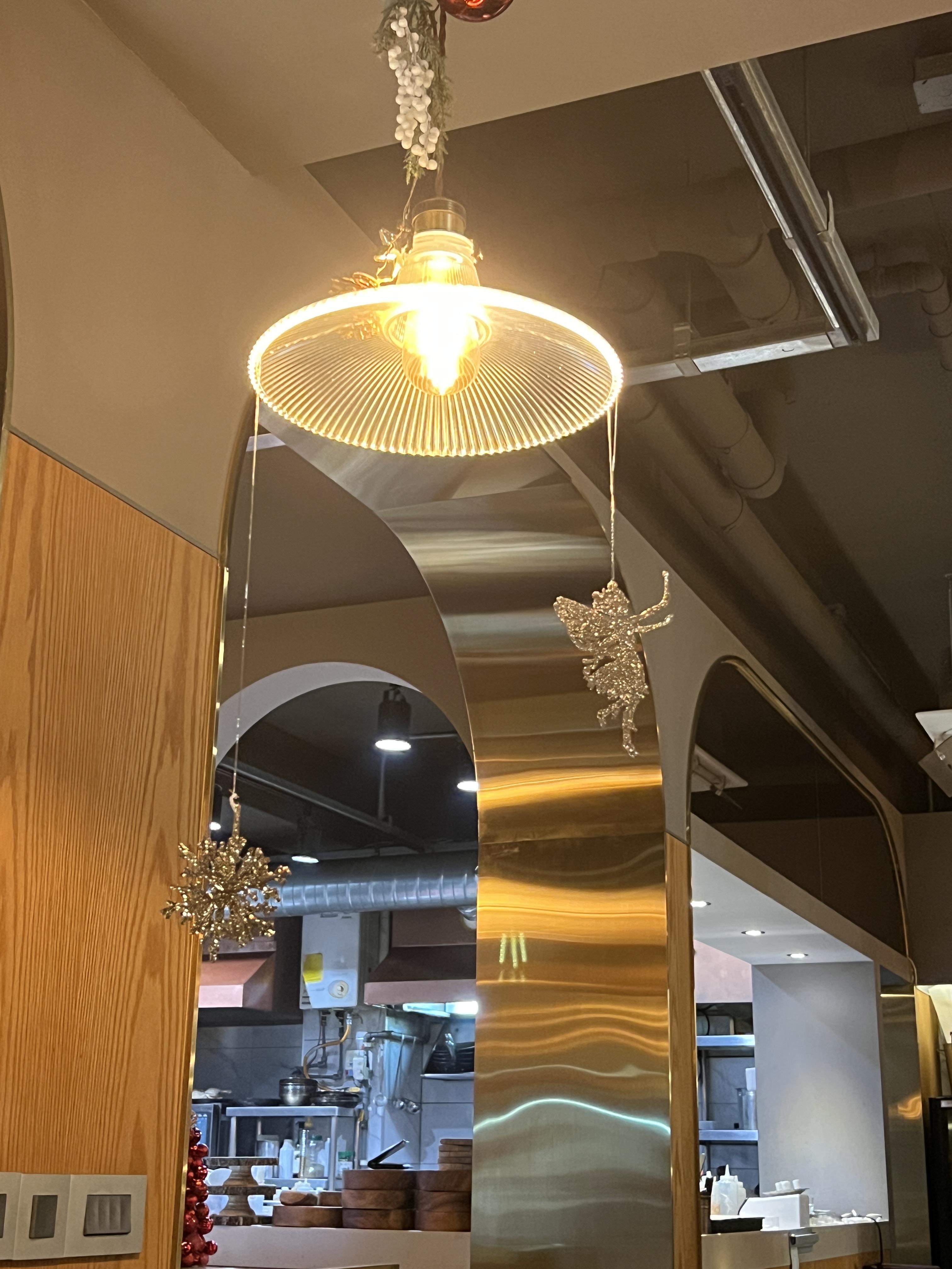 테이블이 6개 정도로 있고요. 그래서 예약이 필수인가 봐요! 조명은 은은해서 따뜻한 분위기입니다.