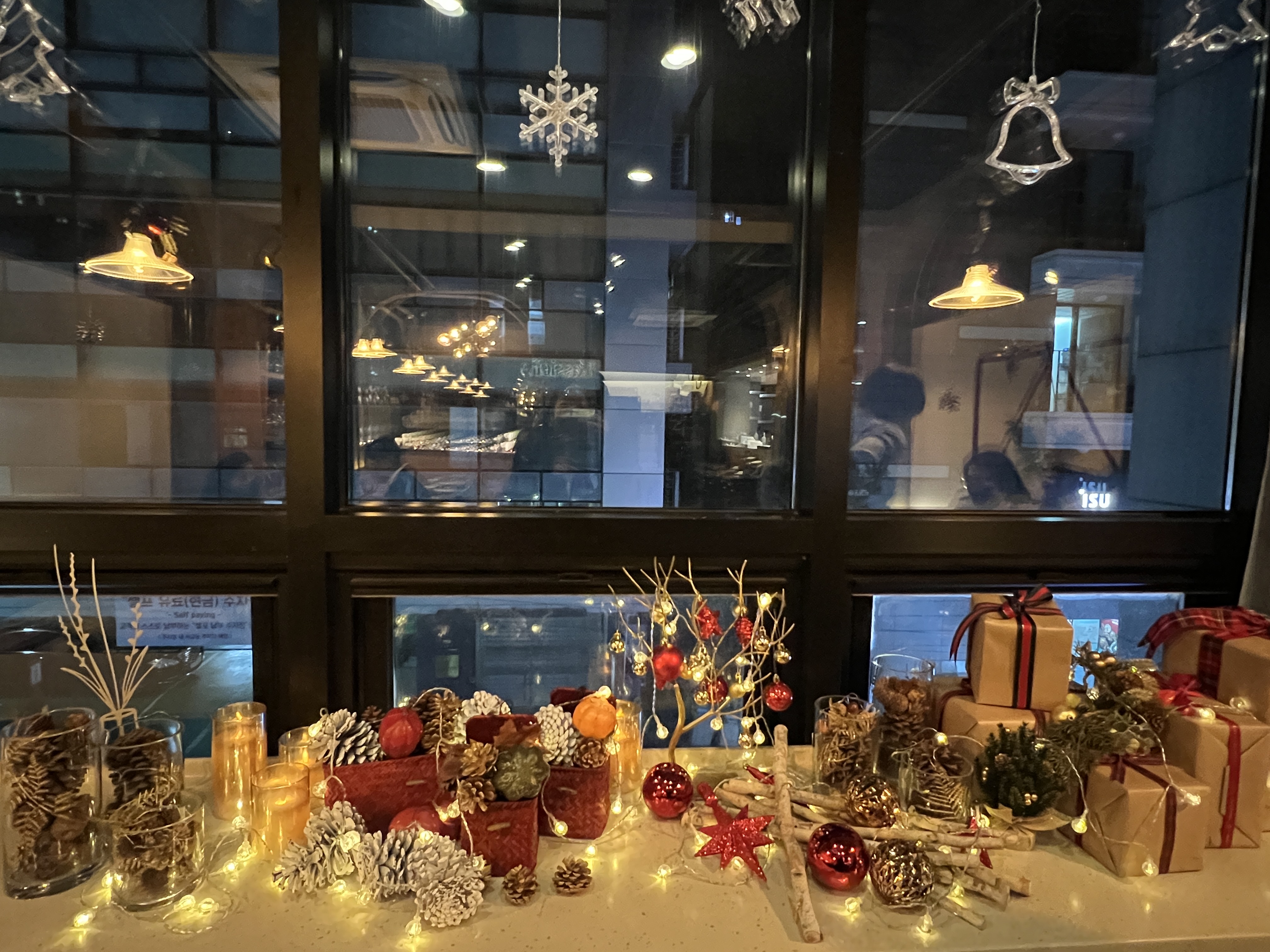 창가엔 크리스마스분윈기가 물씬 나게 꾸며져 있어서