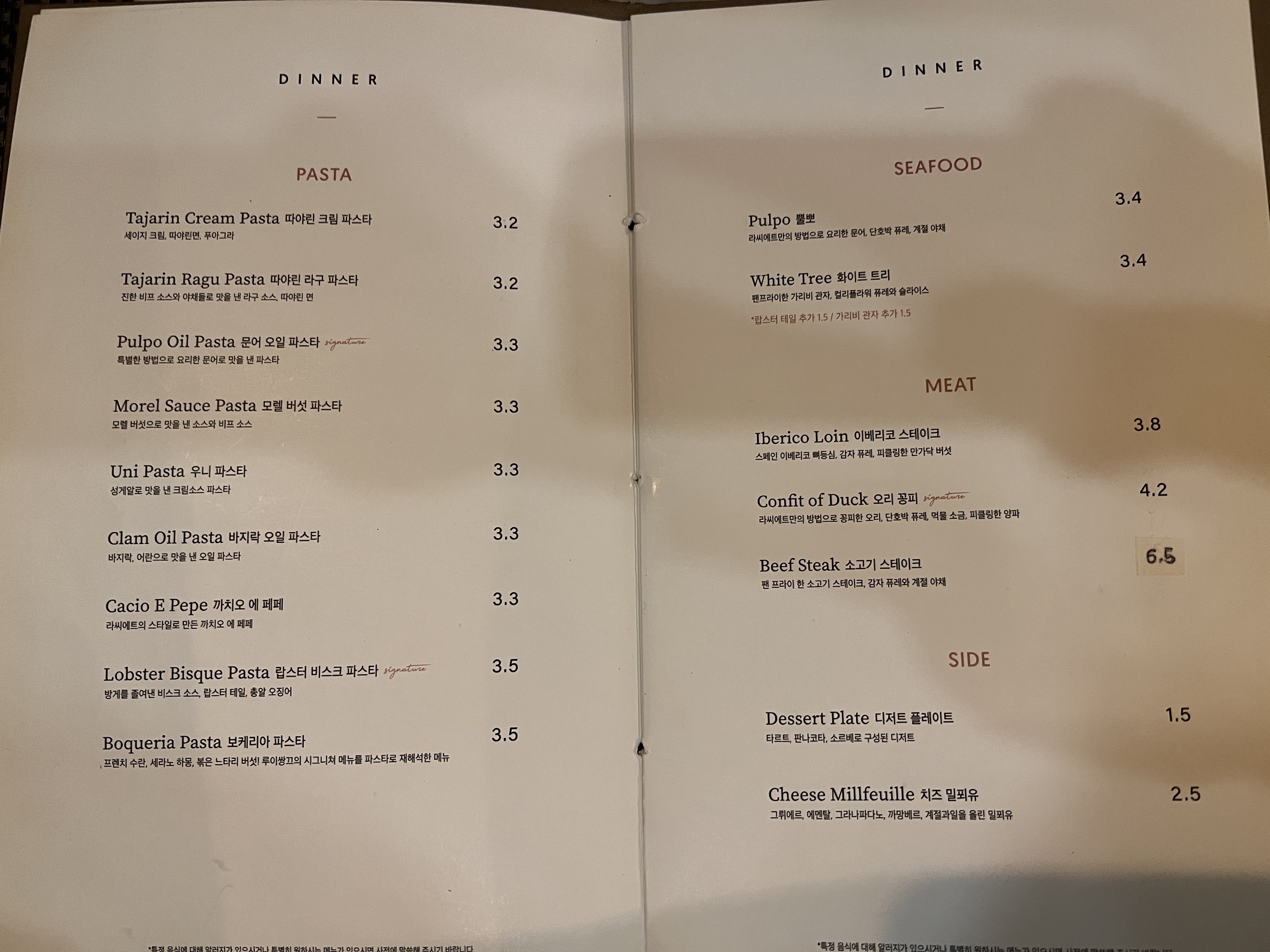 (feat.문어오일파스타, 우니파스타, 이베리코스테이크,프렌치어니언스프,라씨에트샐러드)