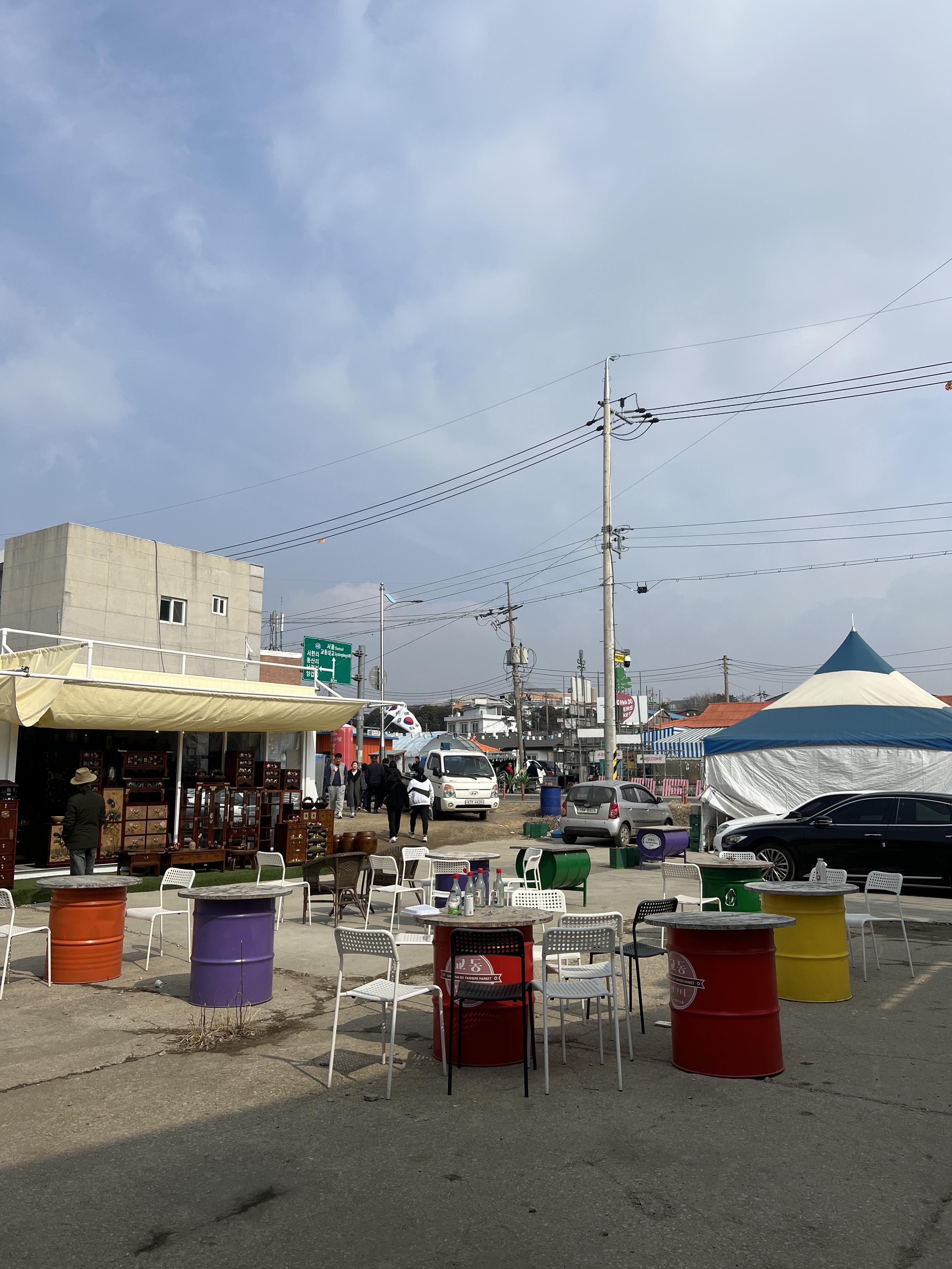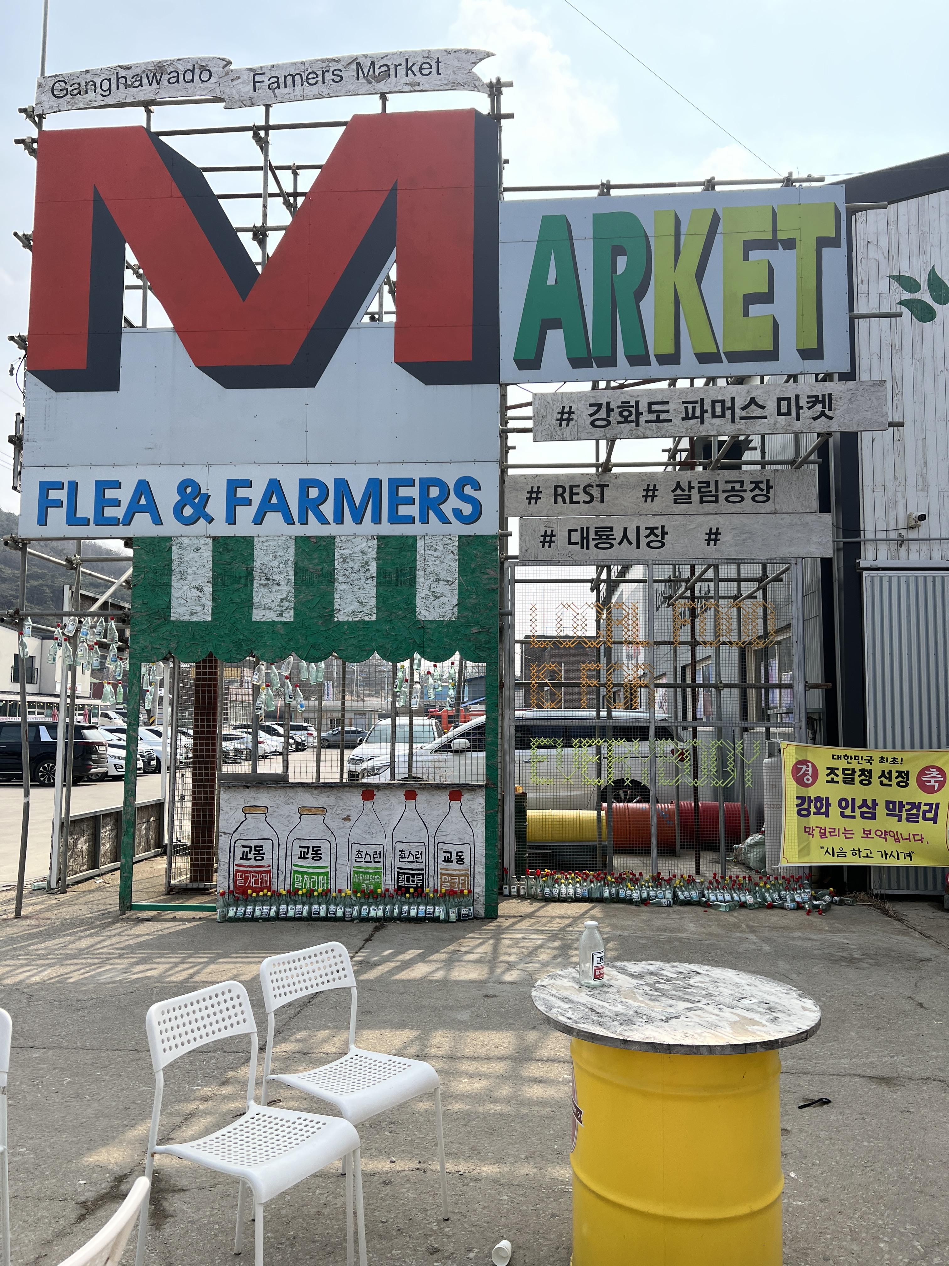 대룡시장, 파머스마켓, 송화칩스, 카페 등 한 바퀴만 돌면 금방 돌 수 있는 장소이기 때문에 교동도 가시면 반드시 즐겨야겠죠? 주차를 하고 제일 먼저 보인 파머스마켓~ 엄청 큰 기대를 하면 실망을 할 수 있기 때문에 그냥 소소한 플리마켓, 옛 느낌의 장소를 소박학 꾸며놓은 장소라고 생각하면 됩니다.